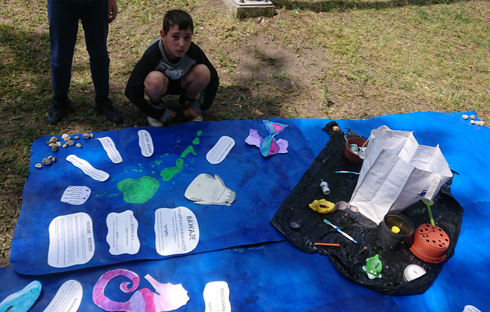 Pod koniec roku szkolnego przywitaliśmy lato poznając kulturę Hawajów i dowiadując się o sztucznej wyspie na Pacyfiku utworzonej… ze śmieci. Klasa 7C w ramach projektu edukacyjno-artystycznego z plastyki przeprowadziła happening.