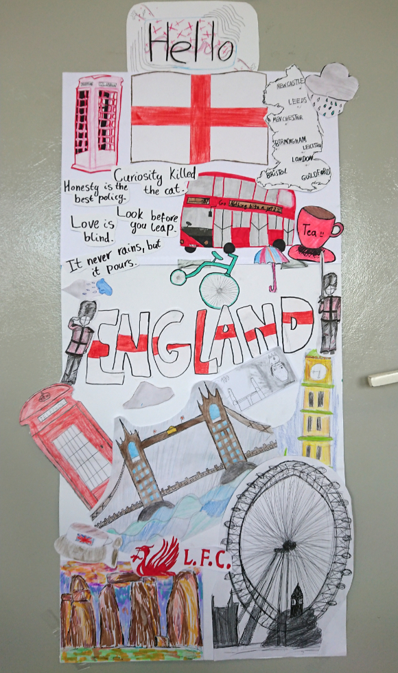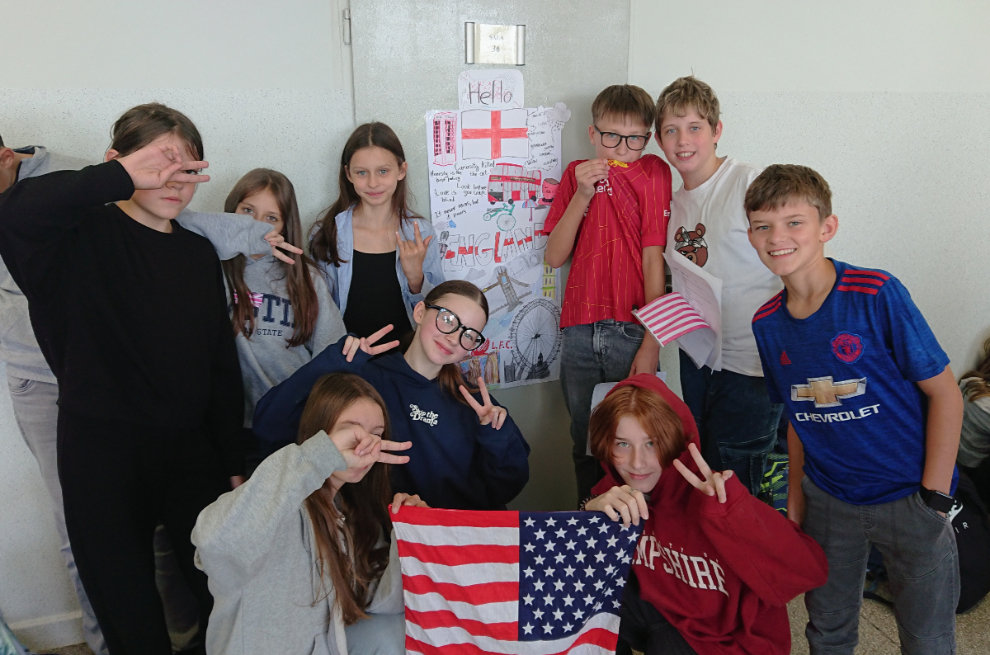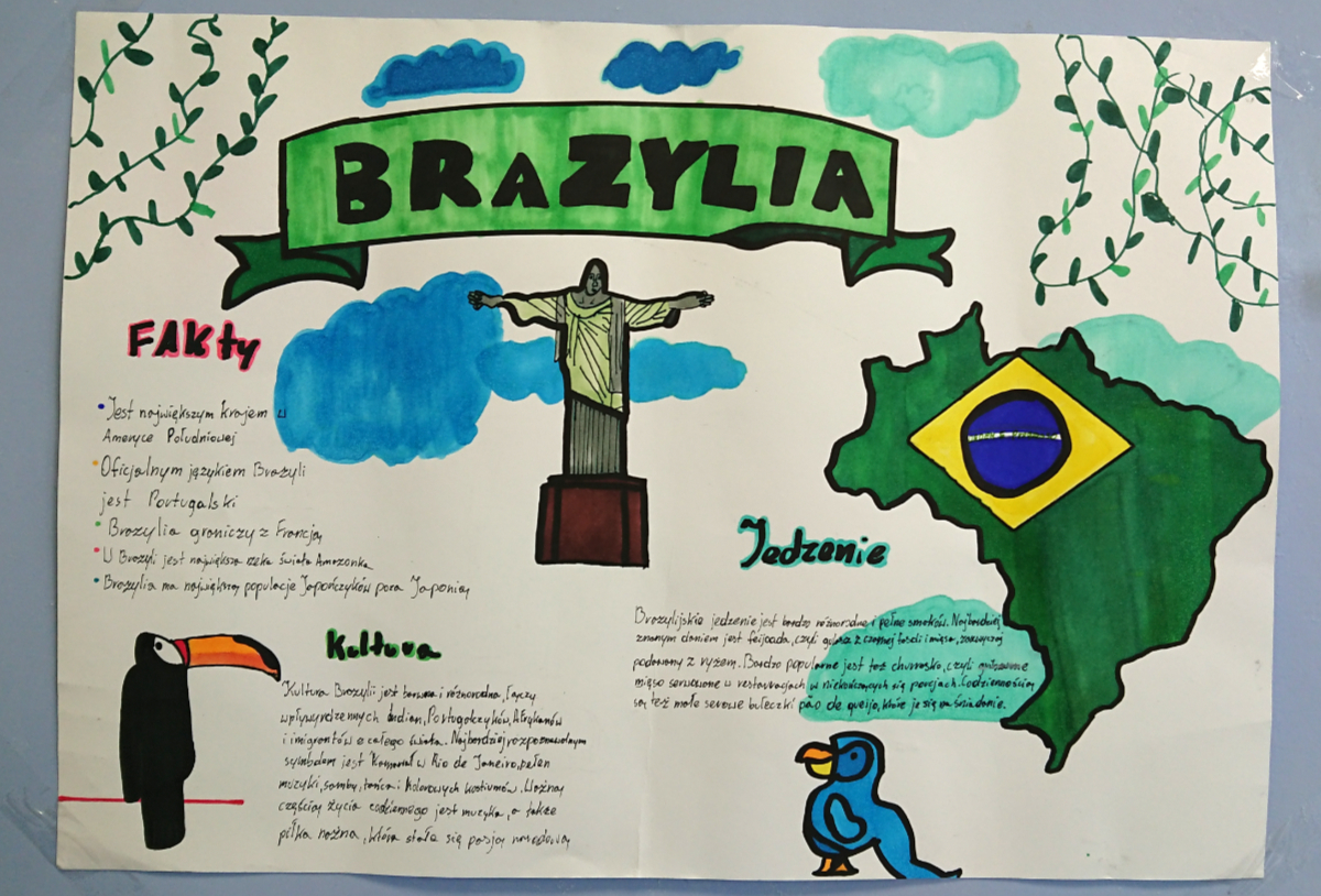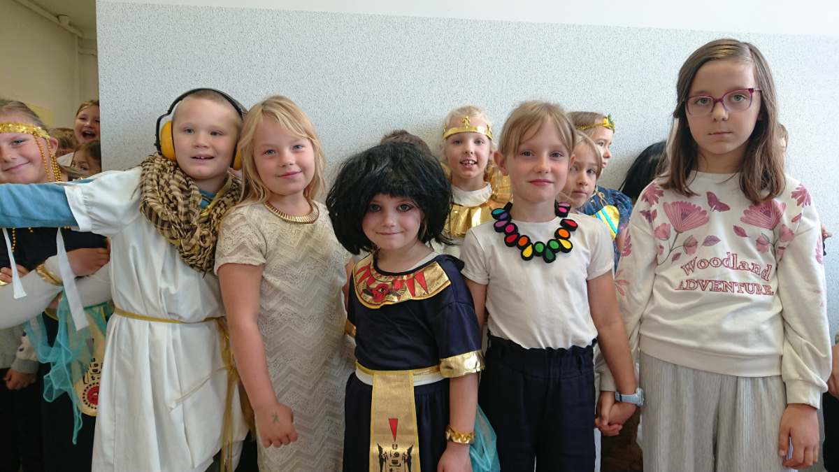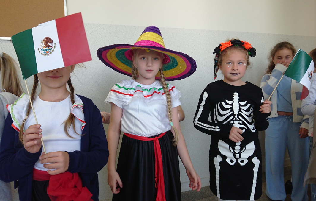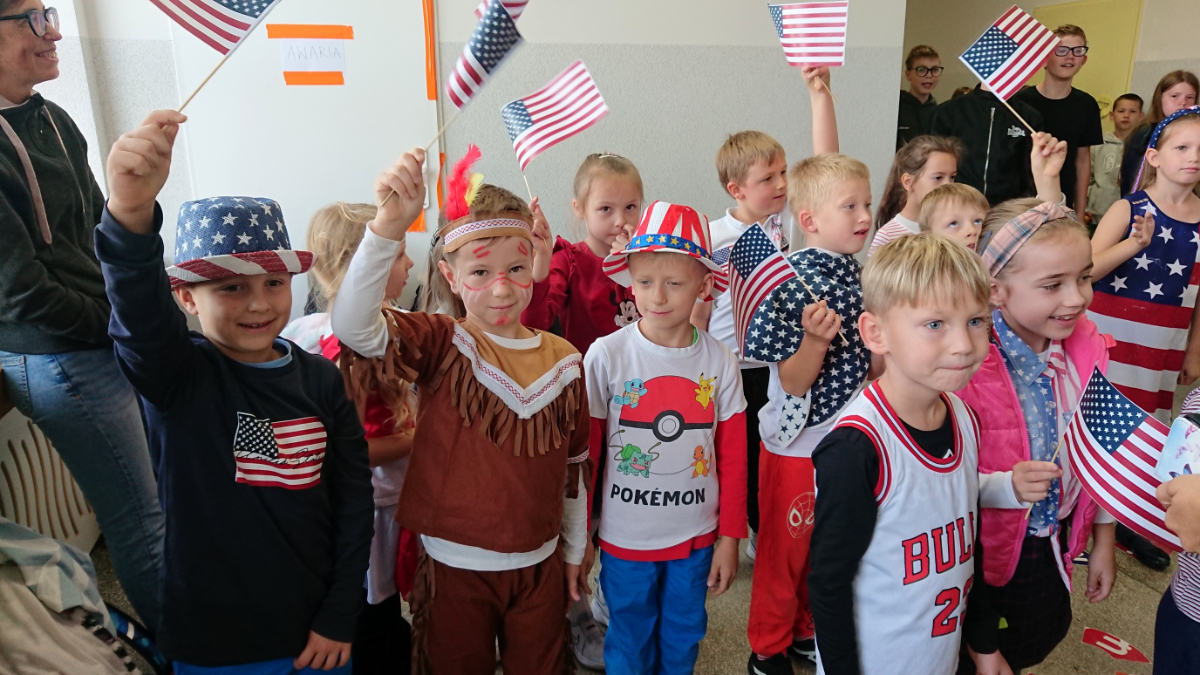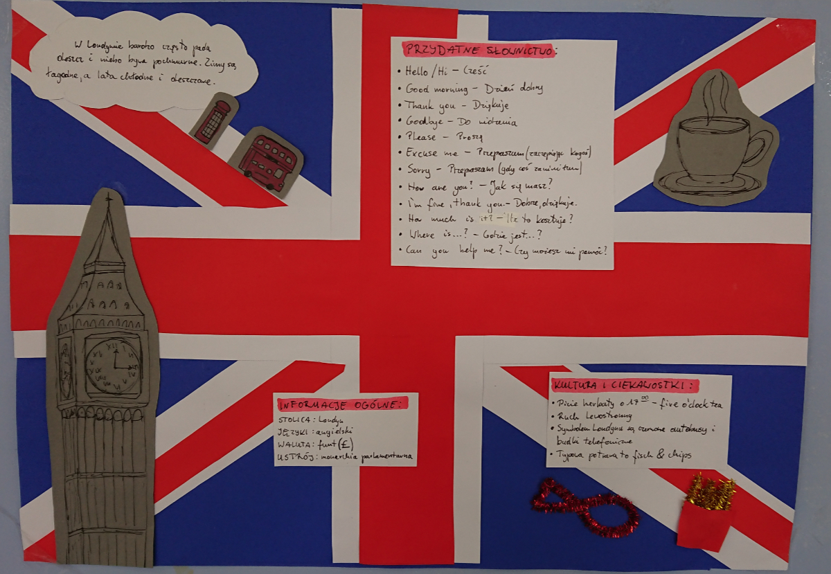 Tegoroczne święto z okazji Dnia Języków Obcych było pełne kolorów, radości i pozytywnej energii! Każda klasa wylosowała kraj, który następnie prezentowała poprzez stroje, plakaty i ciekawostki. Dzięki temu mogliśmy odbyć małą podróż dookoła świata, nie ruszając się ze szkoły. Stroje przygotowali najmłodsi – uczniowie klas 1-3 z pomocą i wielkim zaangażowaniem rodziców. Dużo formatowe plakaty – kolaże były efektem pracy zespołowej klas 4-7. Każda klasa wspólnie stworzyła jedno dzieło, łączące pojedynczo wykonane przez każdego w klasie rysunki i ilustracje na temat danego kraju. Były tez plakaty indywidualne, zawierające różne ciekawostki ze świata. Możecie je obecnie oglądać na szkolnych korytarzach. Wszystkie przykuwają uwagę na dłużej!