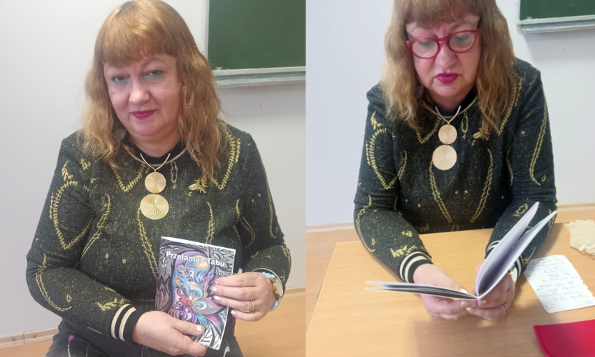 Potwierdziła to na zajęciach warsztatowych lubuska poetka – Pani Anna Szewczuk. W czasie spotkania, które odbyło się w dniu 9 października br., nasz Gość zaprezentował swoją niedawno wydaną książkę oraz opowiedział kilka bardzo interesujących historii ze swojego życia. Uczniowie klasy 6a i 7c wysłuchali także recytacji wierszy Pani Ani. Emanowały one nadzieją i pozytywnym myśleniem. Lubuska poetka wzbudziła w uczniach poczucie, że każdy może napisać wiersz… Wystarczy chwila natchnienia i wytchnienia od spraw codziennych.