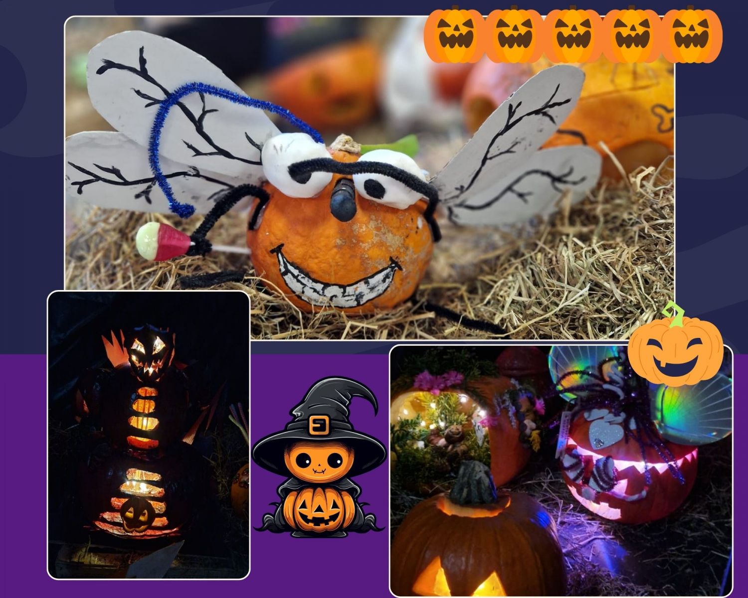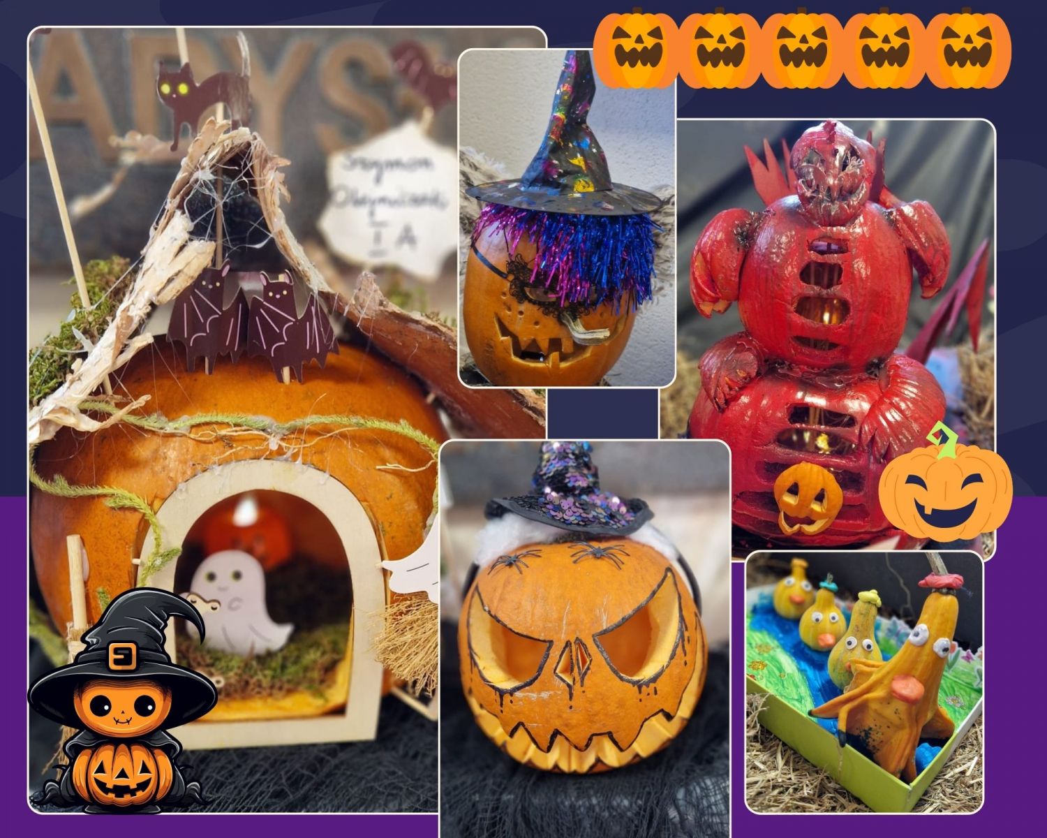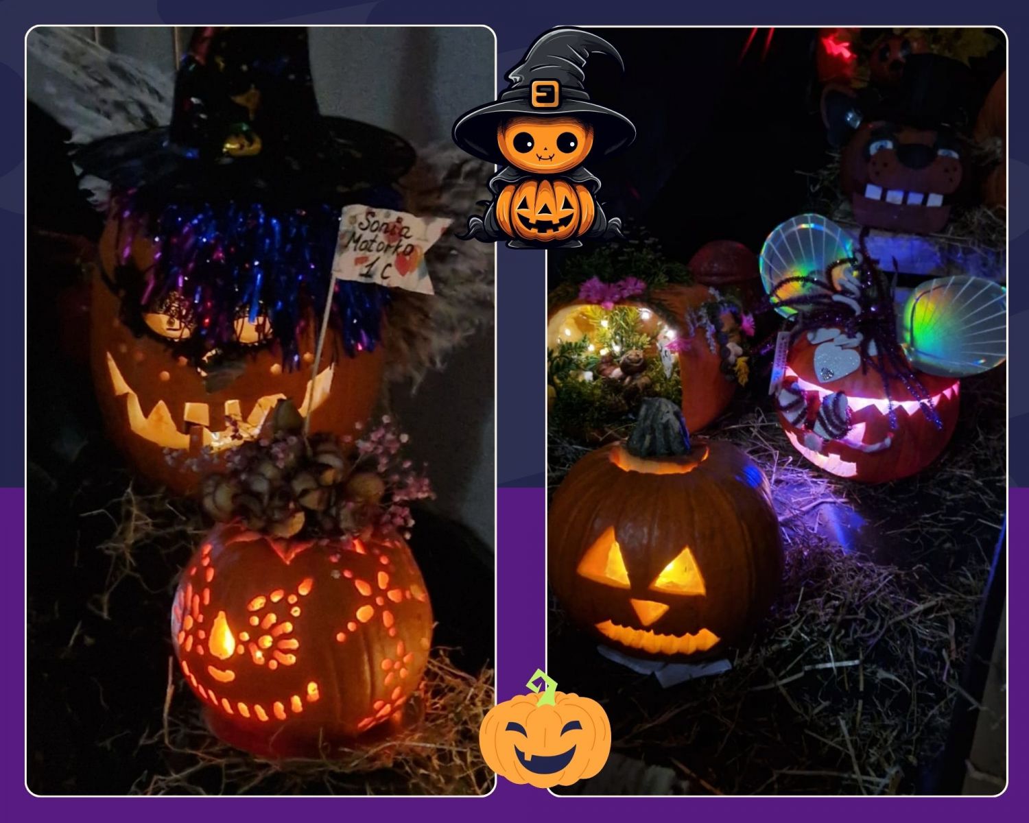 W tym roku na wystawie znalazły się nie tylko dynie wycinane w tradycyjne wzory, mamy ażurowe dynie, dyniowego hot-doga, muchę, wampira, mamy dyniowe spa , liski, kaczuszki, leśne stworki, domki, a nawet dyniową kucharkę. Wieczorami, czego niestety uczniowie nie mogą widzieć, wystawa robi się fantastycznie mroczna i tajemnicza. Ale i bez efektów specjalnych dyniowa ekspozycja robi ogromne wrażenie!
