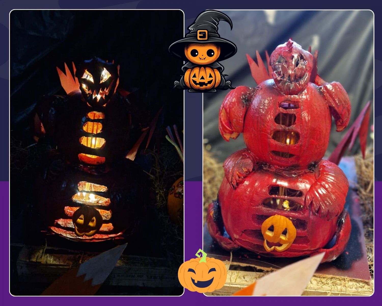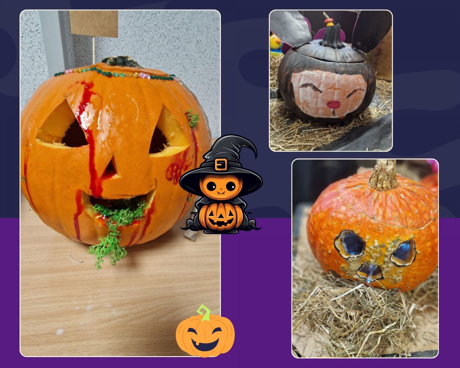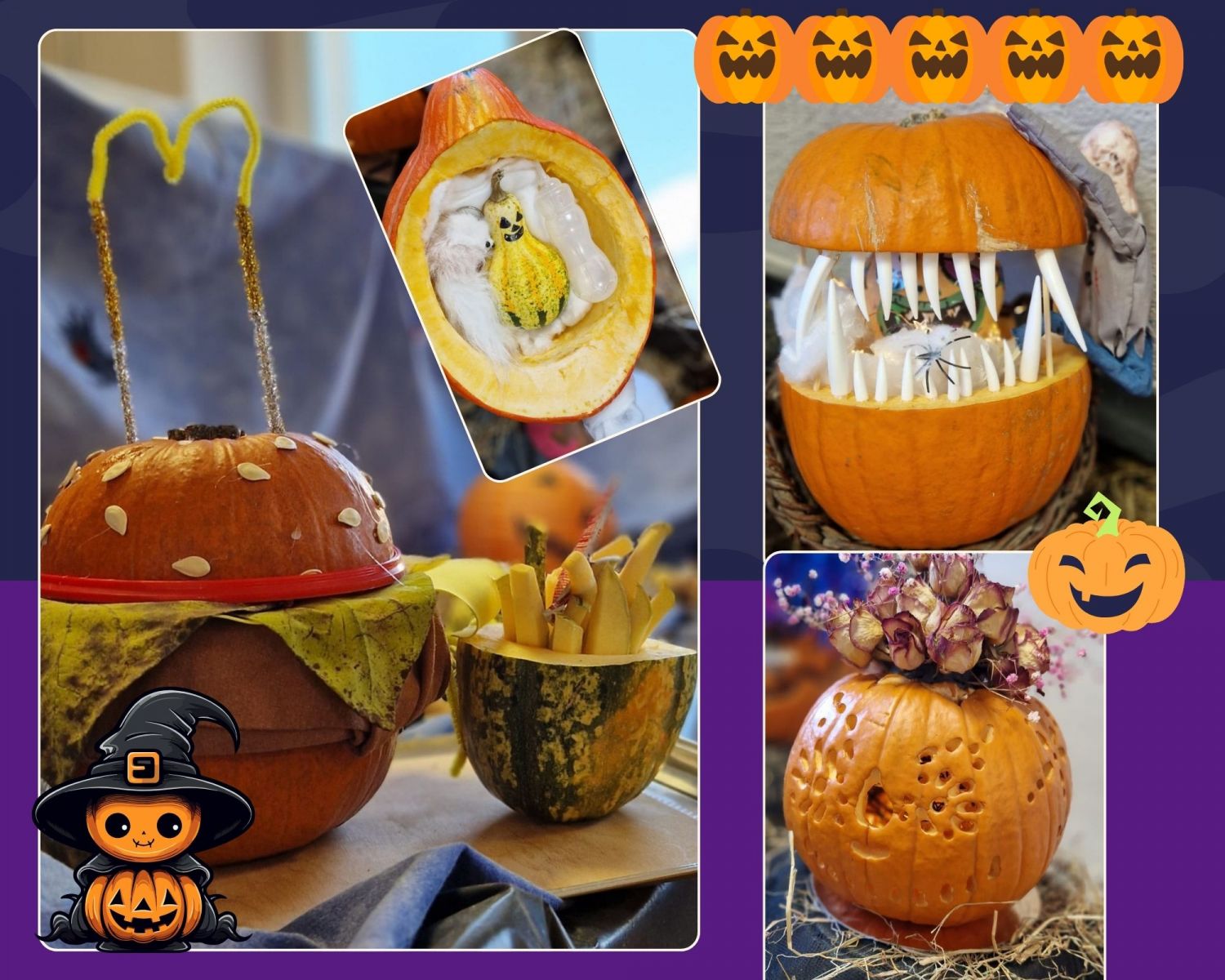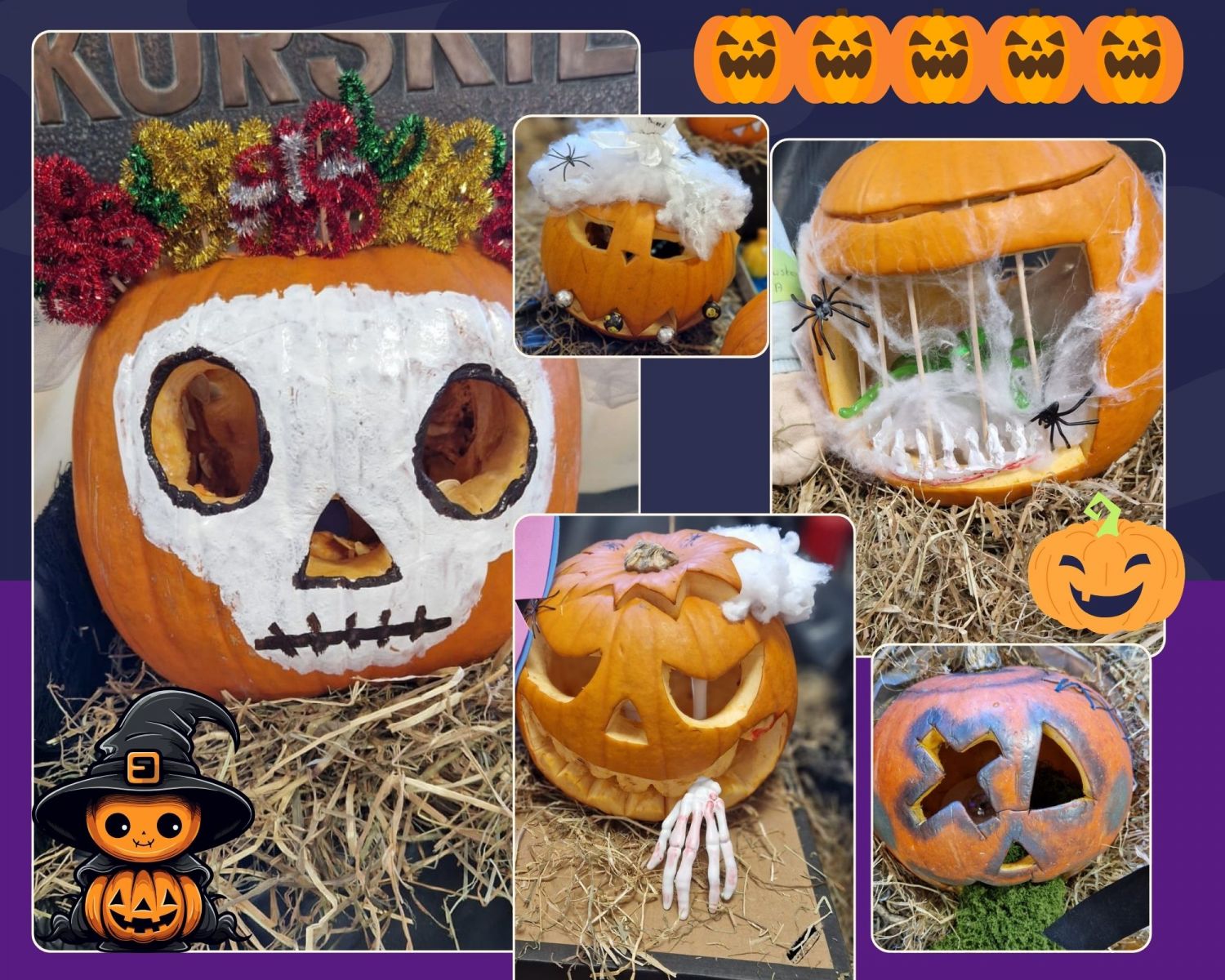 W tym roku na wystawie znalazły się nie tylko dynie wycinane w tradycyjne wzory, mamy ażurowe dynie, dyniowego hot-doga, muchę, wampira, mamy dyniowe spa , liski, kaczuszki, leśne stworki, domki, a nawet dyniową kucharkę. Wieczorami, czego niestety uczniowie nie mogą widzieć, wystawa robi się fantastycznie mroczna i tajemnicza. Ale i bez efektów specjalnych dyniowa ekspozycja robi ogromne wrażenie!