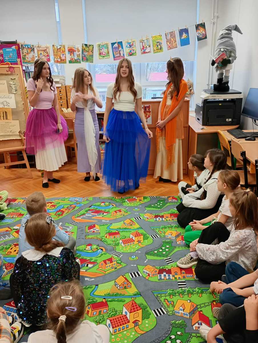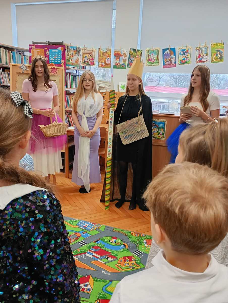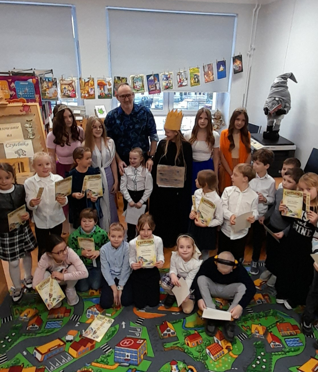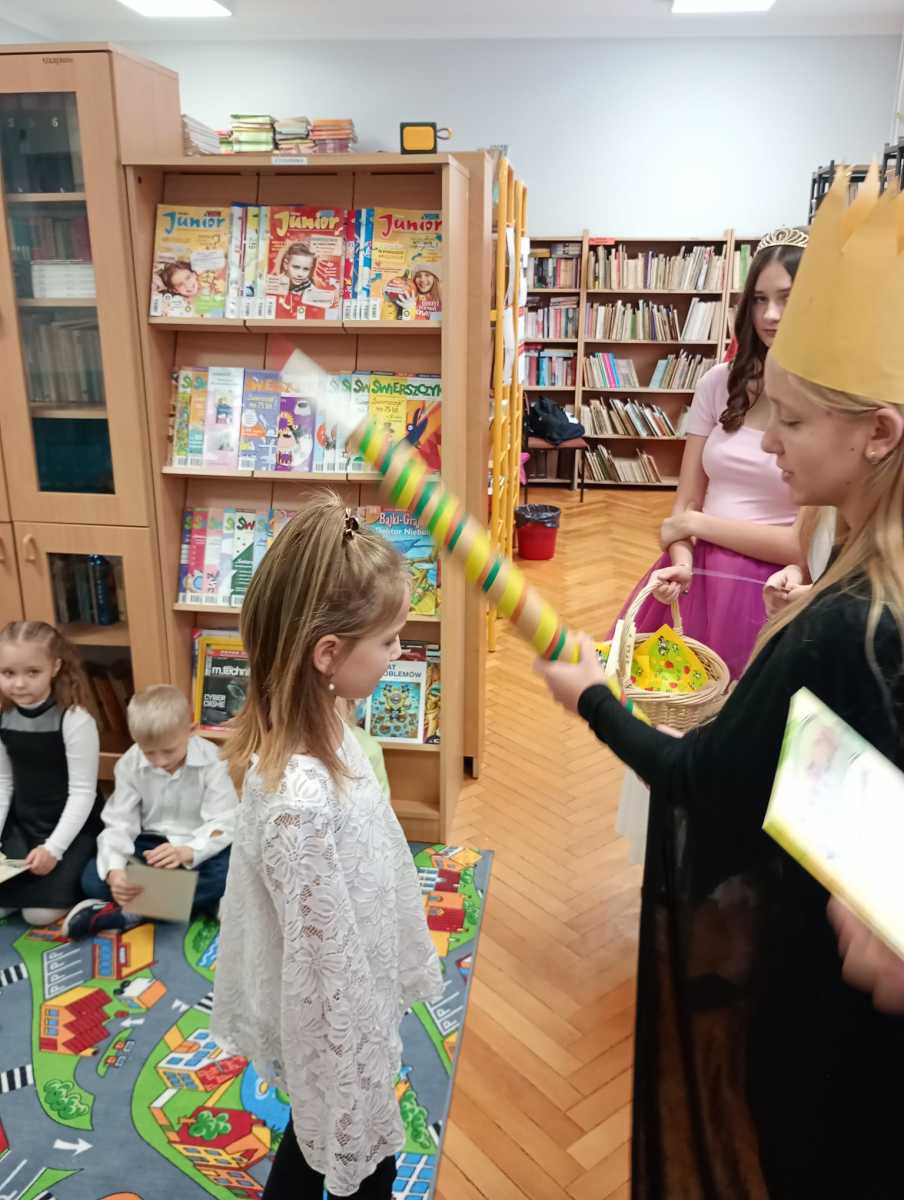 Jak co roku, w bibliotece szkolnej odbyła się uroczystość pasowania uczniów klas pierwszych na czytelników. W wydarzeniu wzięli udział uczniowie wraz z wychowawcami oraz pan Dyrektor Tomasz Chmielarczyk. Tego dnia nasza biblioteka otworzyła swoje magiczne drzwi przed dziećmi, tutaj każde słowo ma moc, a książki potrafią mówić. Królowa Książek oraz Wróżki ze znanych bajek, wprowadziły dzieci w magiczny świat książek, bajek, opowieści. Aby sprawdzić gotowość uczniów do stania się czytelnikami, Wróżki przygotowały zagadki dotyczące bohaterów znanych bajek. Dzieci z zaangażowaniem odpowiadały na pytania, wszystkie zagadki zostały rozwiązane bez trudu, co potwierdziło, że pierwszoklasiści są gotowi do podjęcia roli czytelników.